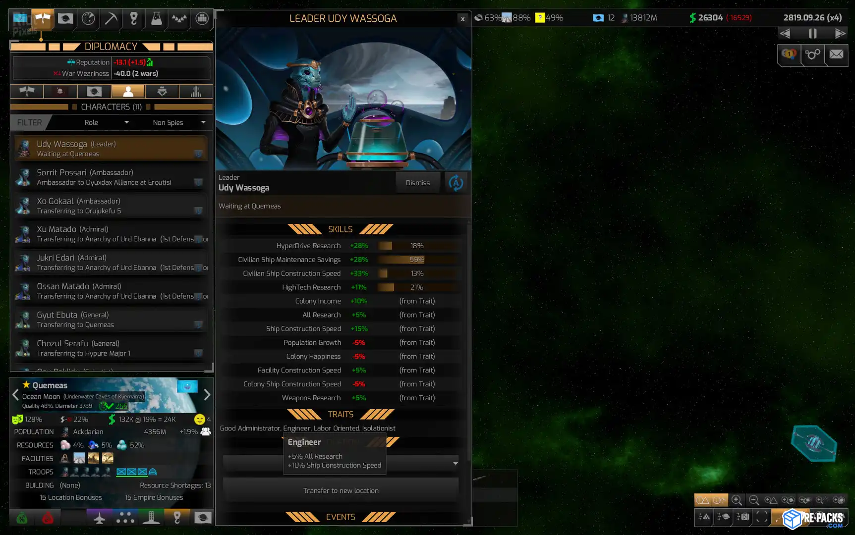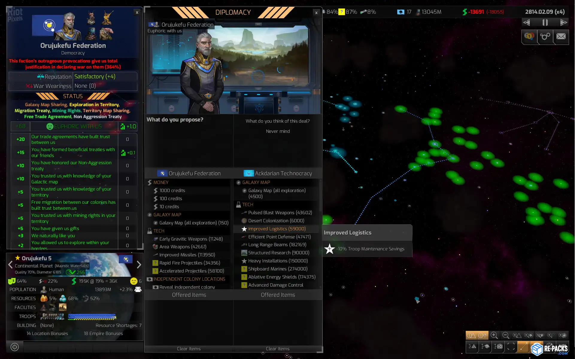 Huge Galaxies with up to 2,000 star systems and tens of thousands of planets, moons and asteroids are yours to explore and exploit, whether peacefully through mining and diplomacy or by conquest! The complex process of generating a galaxy ensures that every new game will be different and the many galaxy setup options ensure incredible replayability as well as the ability to have your game be just the way you like it.