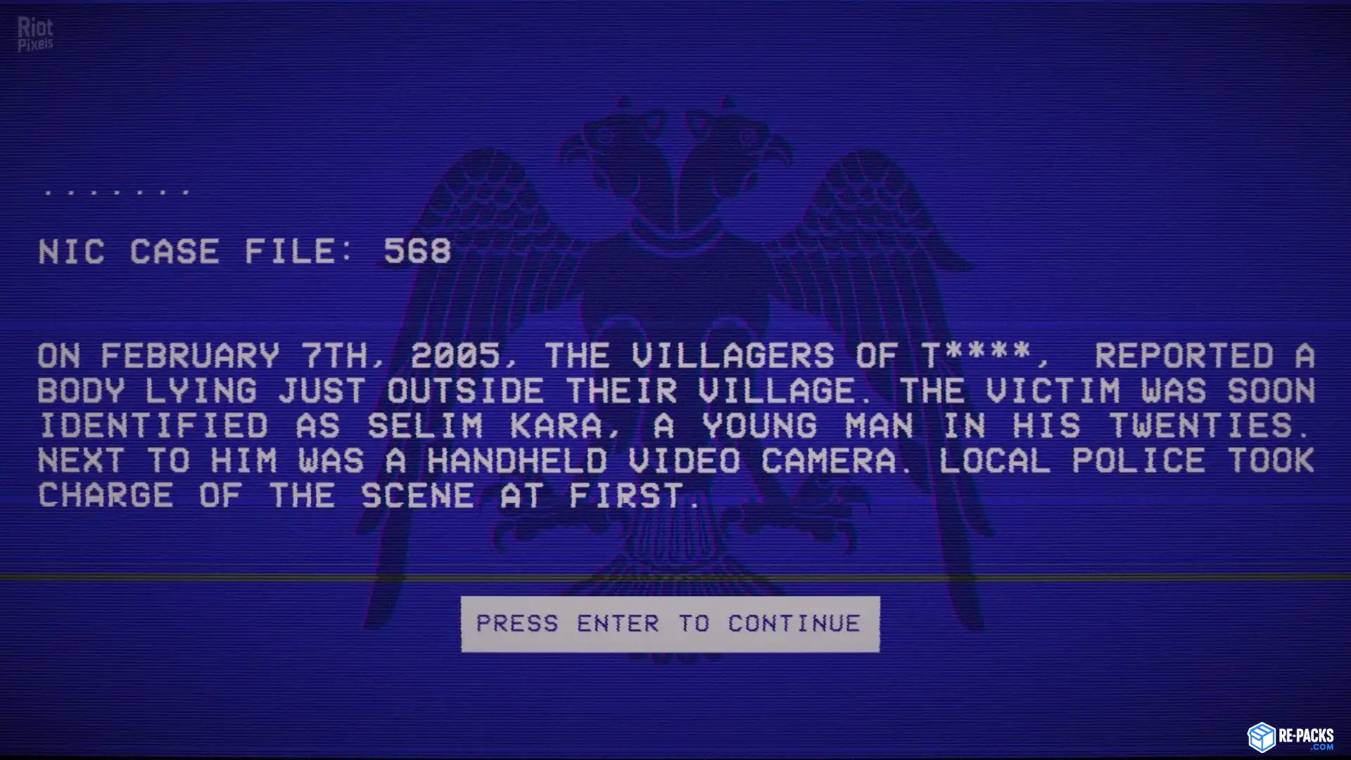 A young man named Selim Kara is found dead under mysterious circumstances. When a camera is connected to his computer, the system becomes corrupted and its files turn unreadable. You are an agent at the National Intelligence Center. Your assignment is simple: recover the files.